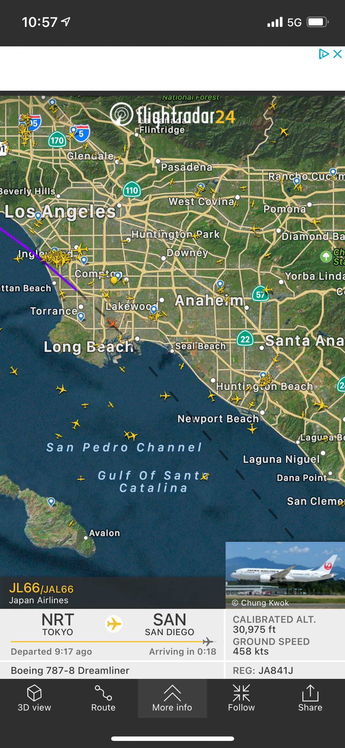 Japan Air Lines 788 from Tokyo to San Diego