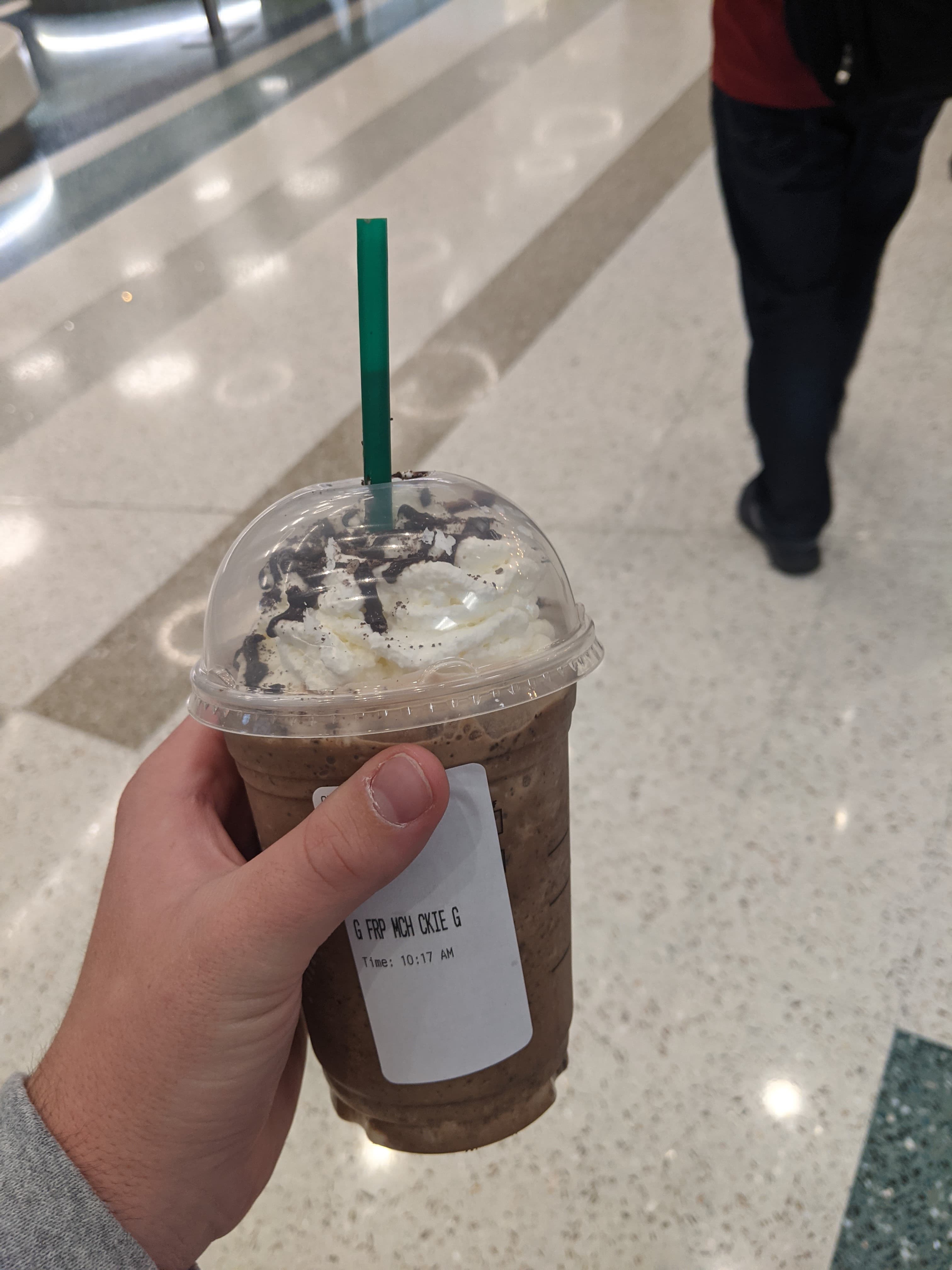 Easy. Simple. Thanks TSA-pre! Also got to use my newly issued licence, which was an added bonus. Didn’t have to take off shoes, take anything out of my bag, love it! Also I HAD to get Starbucks, Mocha Cookie Crumble Frappeccino.