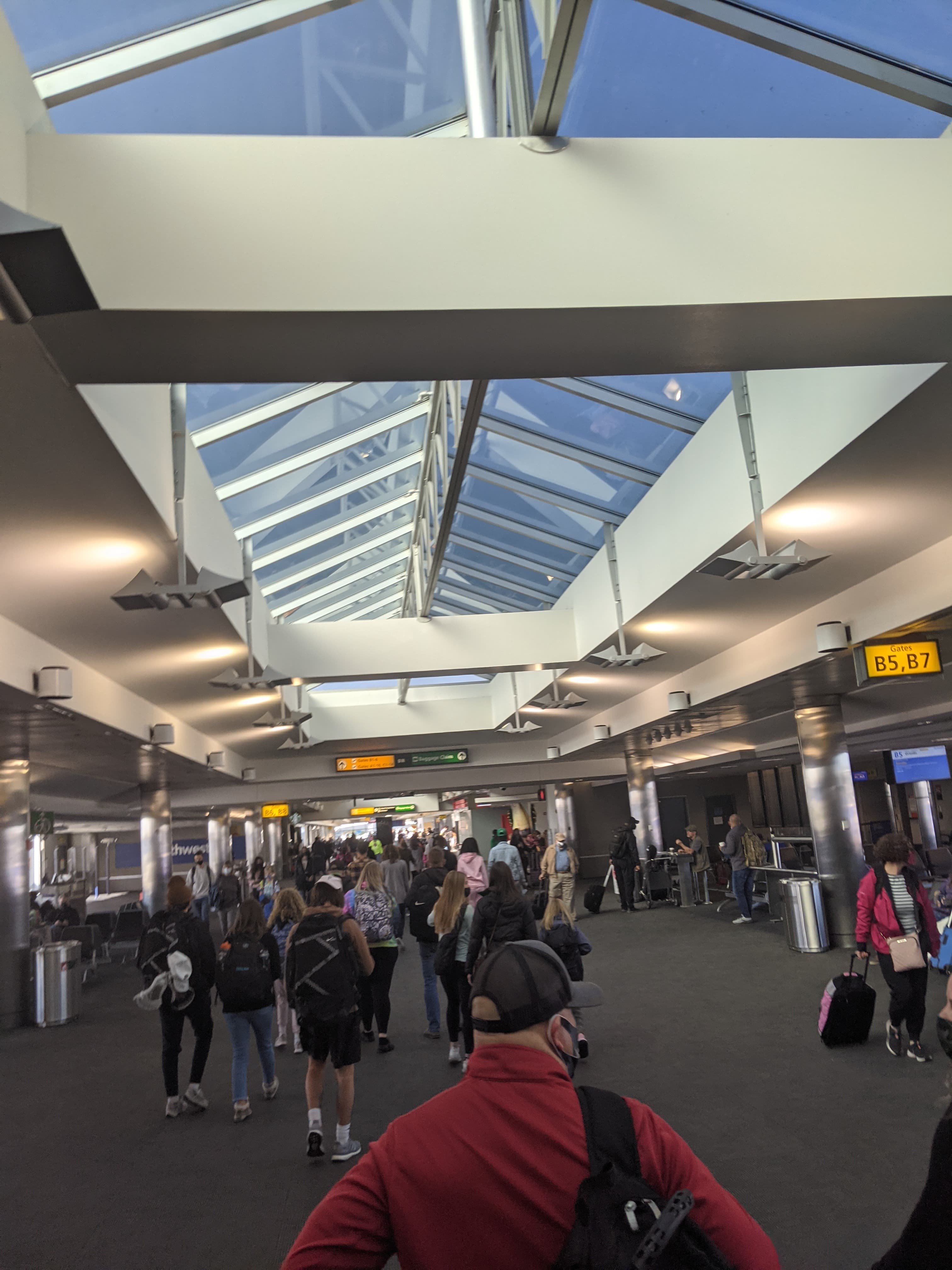 B7 can get super crowded, so, luckily some desks were open in the business area, lots of fun to do schoolwork at the airport so I didn’t have any to do during my trip. As this was a full flight around 180 people were at the end of the concourse, including the E170 to Charlotte. Gate agent got mad at my little brother for trying to get on the plane before the families and an unaccompanied minor. Loved walking around, great little place!