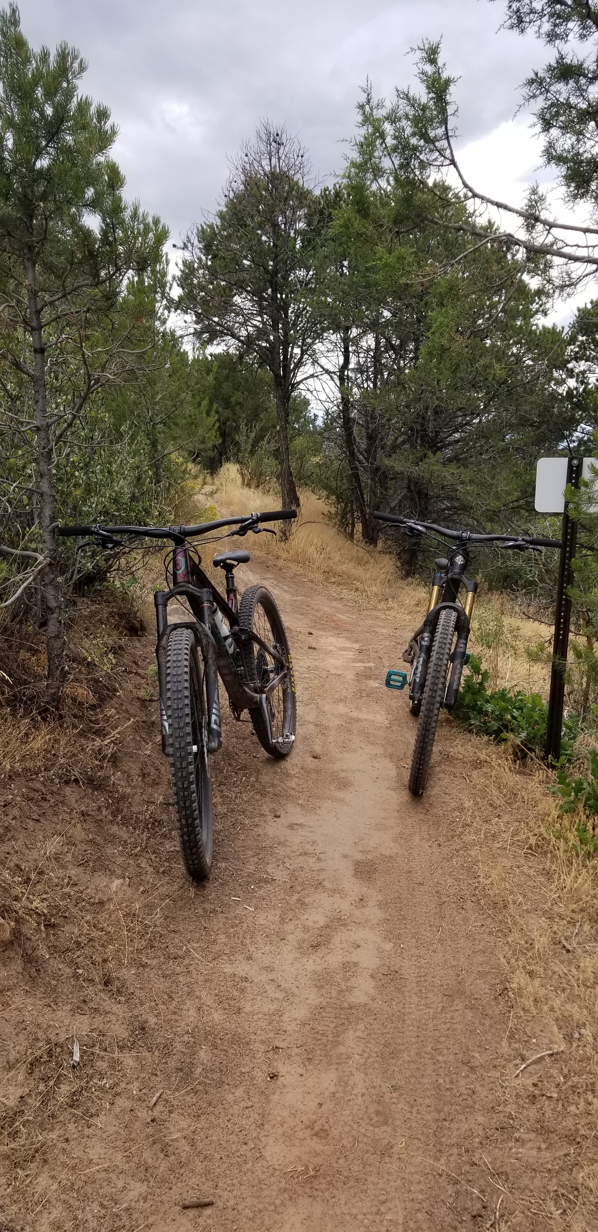 Me and my friend’s bikes (left is mine) where we stopped on the trail to take pictures before riding down.