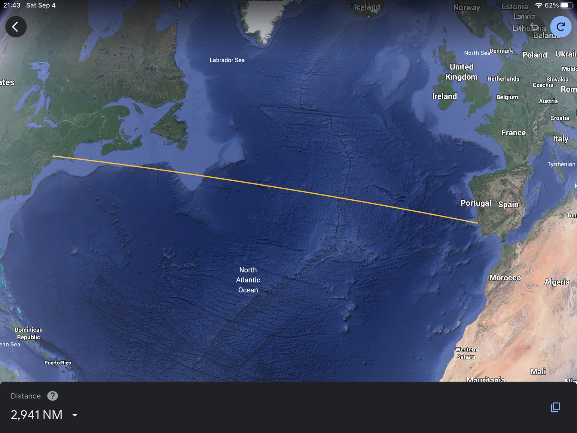 Those North Atlantic Tracks can increase the distance by quite a lot, especially when heading westbound in winter